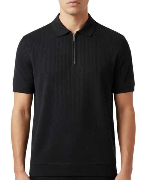 The clean lines and dense weave of this black polo are broken only by the sharp, metallic zip closure, providing a streamlined, contemporary silhouette. This is your essential piece for evenings that require quiet confidence and modern refinement.