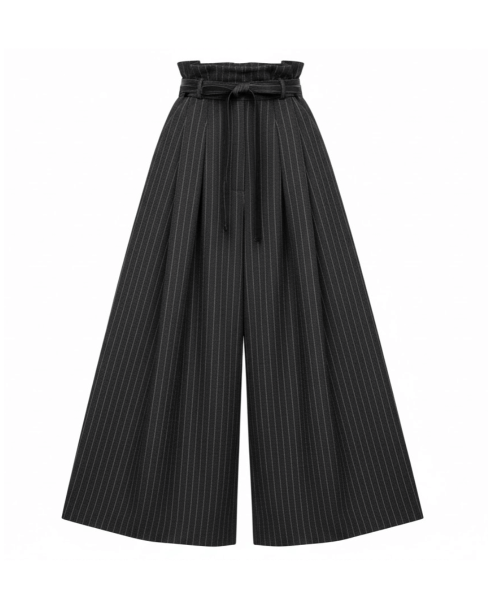 Embrace the enigma with these wide-leg pinstripe trousers that blend classic tailoring with shadowy drama. The subtle vertical lines create an illusion of endless length, while the relaxed fit speaks to effortless confidence. Perfect for a powerful, whispered statement.