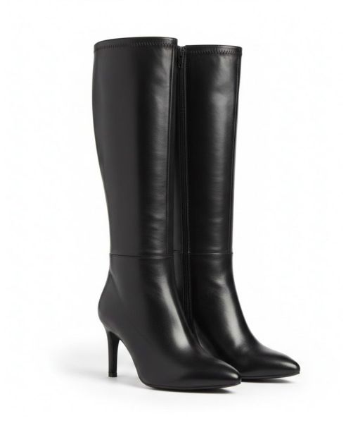 Elegant, knee-high black boots with a refined high heel and a commanding, smooth silhouette. The essential piece for polished, confident style, crafted for seamless day-to-evening wear.