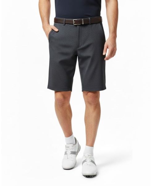 A charcoal gray short, cut to the knee for a sharp, uncompromising profile. The subtle heathered texture and clean lines suggest a man who prefers to operate in the gray area—well-dressed, yet ready for action. Paired with a dark leather belt, it’s the essential garment for a day spent under observation or a quick escape.