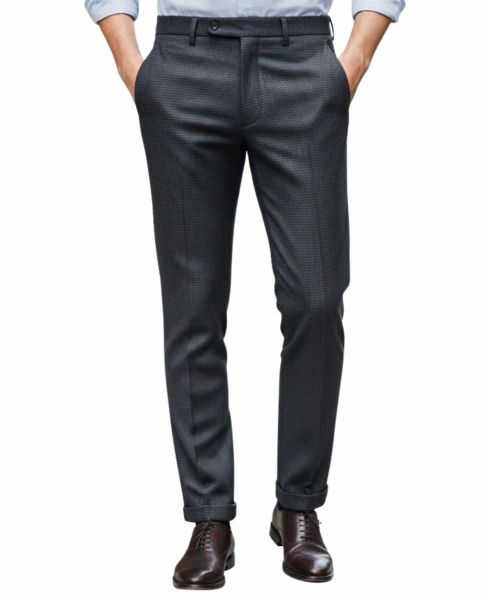 Crafted from a dense, shadow-textured wool blend, these trousers feature a subtle, repetitive micro-weave that catches the light like the chrome grille of a getaway car. A tailored, clean line ensures a sharp silhouette.