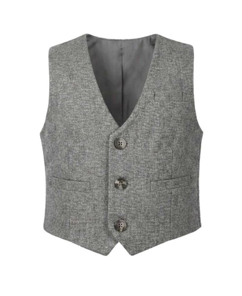 This heather-grey waistcoat features a smart three-button closure and a textured finish that looks sharp on any occasion.